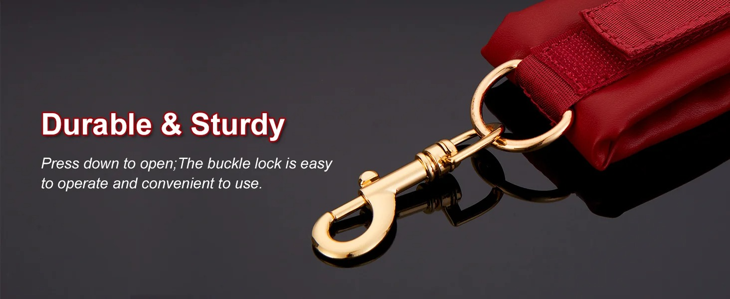 • Sturdy D-ring + clasp chain for quick connect & release ⛓️