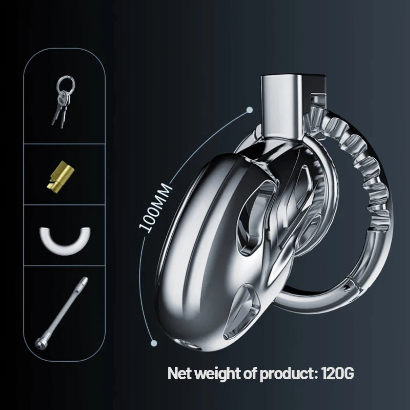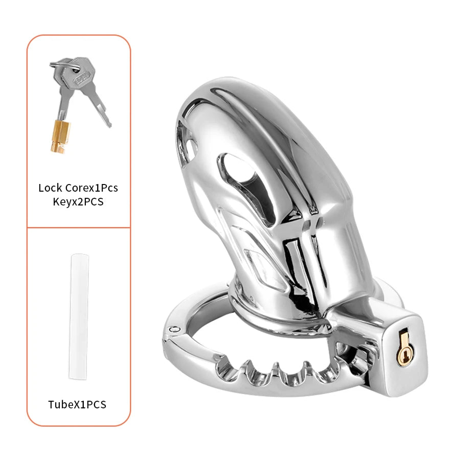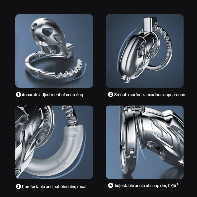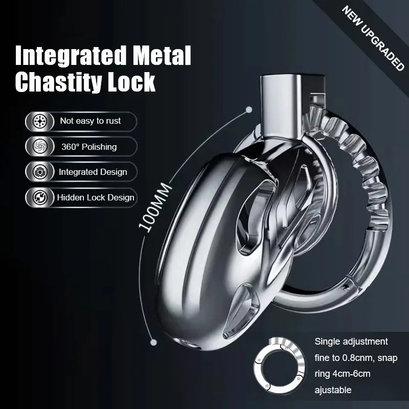 Step into the realm of irresistible restraint with this upgraded integrated chastity cage β a glimmering symbol of control and discipline. Crafted from smooth aluminum alloy and polished to perfection, this lockable snap ring design ensures comfort, security, and absolute obedience. Whether it's for teasing play or long-term wear, this cage doesn't just lockβit captivates.β¨