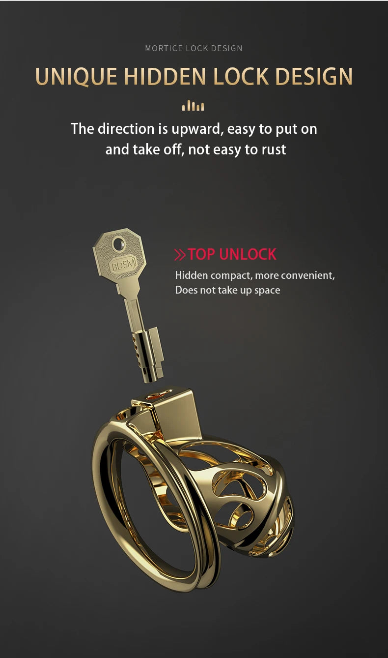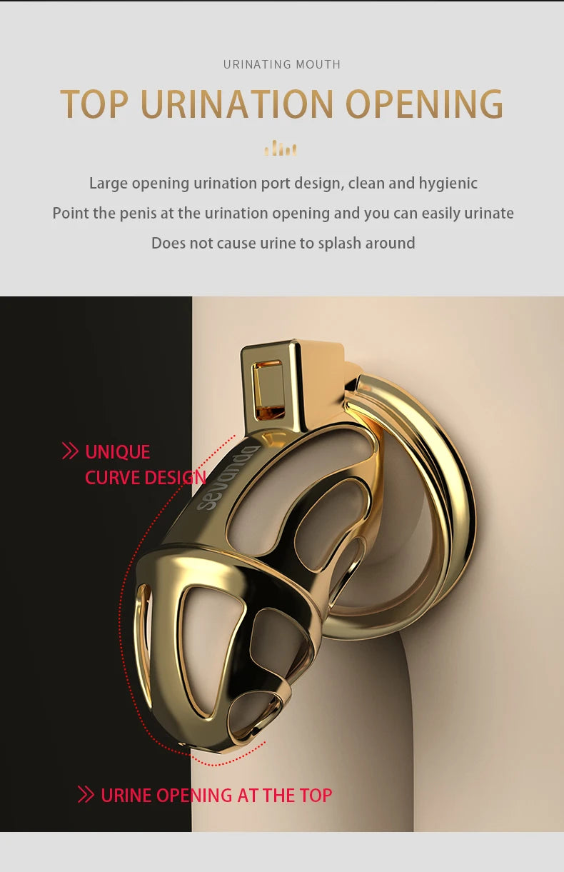 Crafted for the elite, the Sevanda Resin Chastity Cage offers a commanding presence in a sleek gold finish. 💎 Designed for long-term wear and elegant restraint, this cage combines streamlined curves with breathable comfort and a luxurious metallic touch. Whether for play or discipline, this premium device promises refined control with uncompromising class.