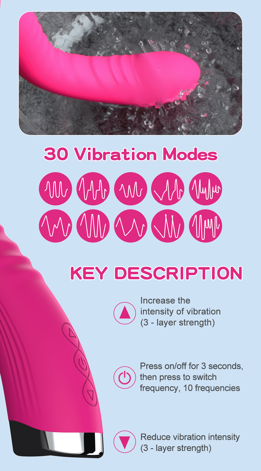 • 10 Variable Speeds: Switch between gentle pulses to powerful vibrations for customized pleasure.