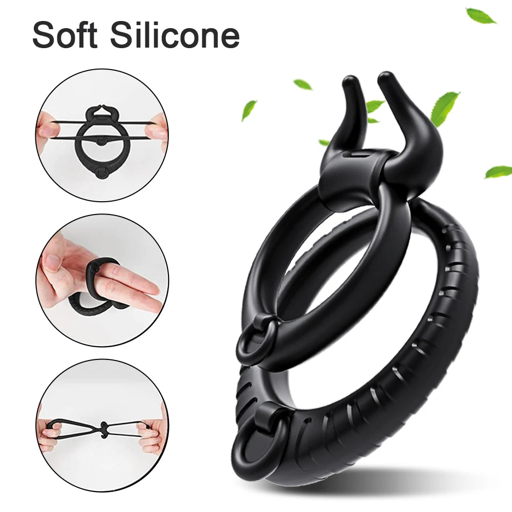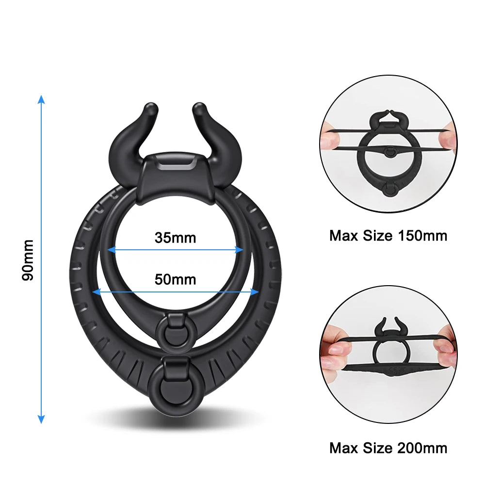 This powerful double-ring vibrating cock ring isn't just about lasting longer β it's about taking control of your climax and intensifying every stroke. Featuring a bold horned design, this toy delivers thrilling sensations to both partners with 10 intense vibration modes that tease and please from all angles. π₯