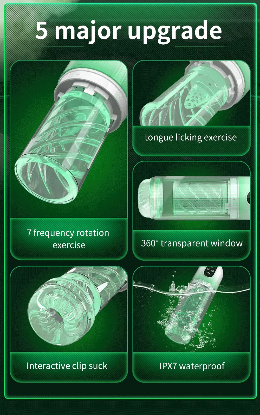 • Function: Sucking, Vibrating, Rotating, Thrusting, Licking