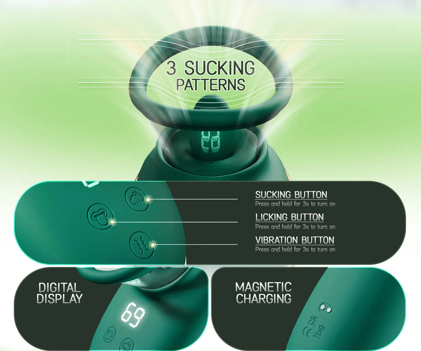 β€’ Functionality: Nipple sucker + vibrating dildo with remote