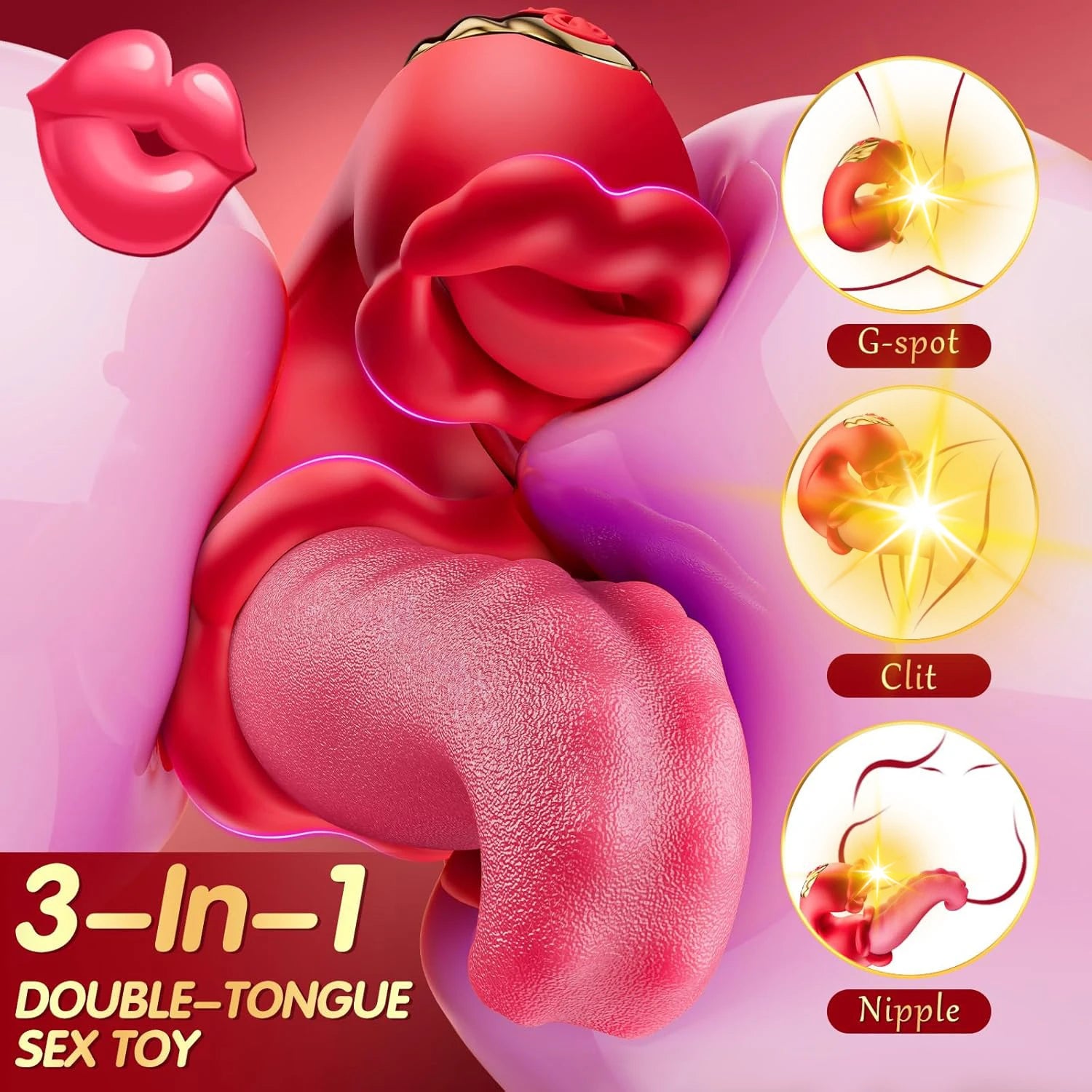 3-in-1 Rose Vibrator Sex Toy: Discover the upgraded dual-tongue rose vibrator that combines swinging, licking, and vibrating functions for an amazing experience. It stimulates the clitoris, vagina, and G-spot at the same time, offering intense pleasure. This unique and powerful toy is designed to give you exciting and satisfying sensations every time. With its multifunctional features, it sets a new standard for G-spot and clitoral vibrators, making it a top choice for women's pleasure.Frequently Asked Questions