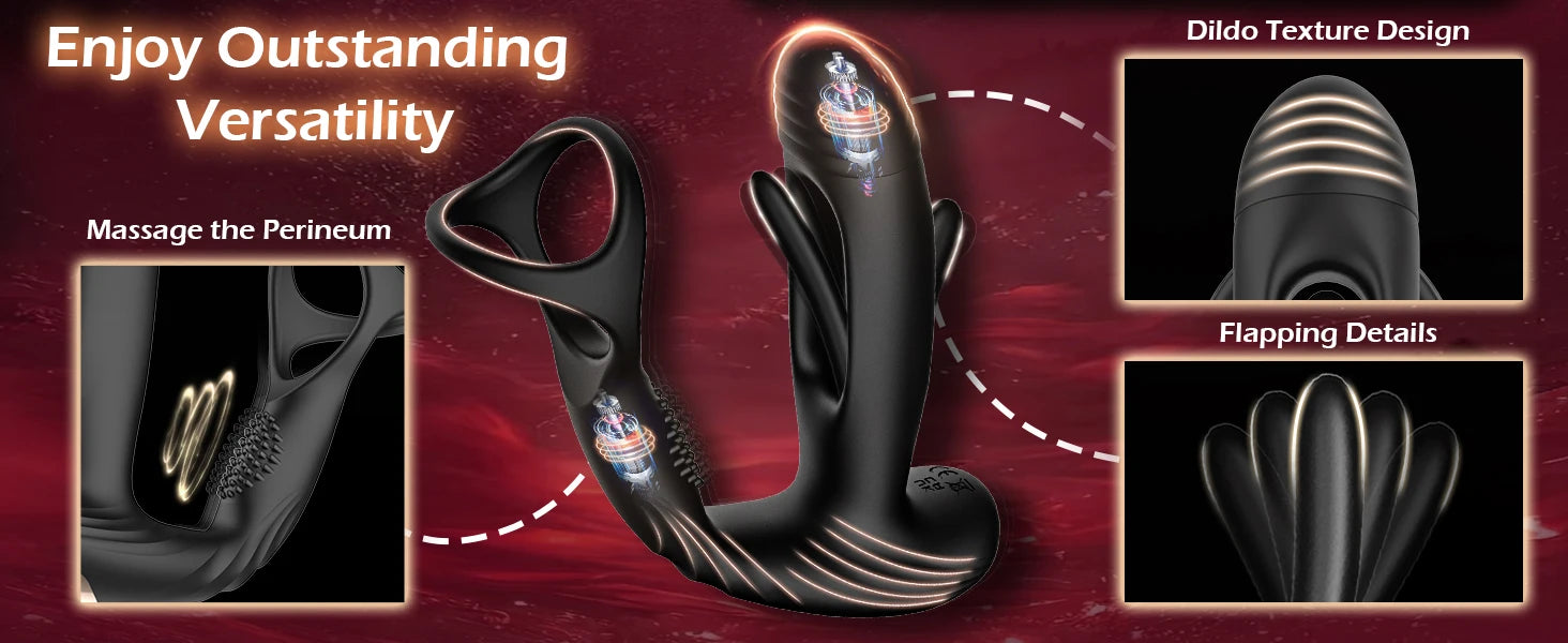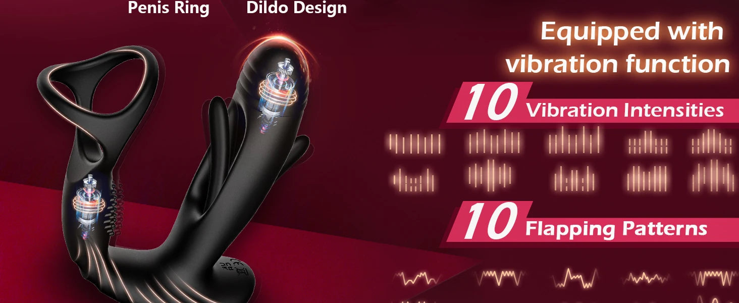 • Function: 10 flapping modes + 10 vibration modes for prostate, perineum & cock stimulation